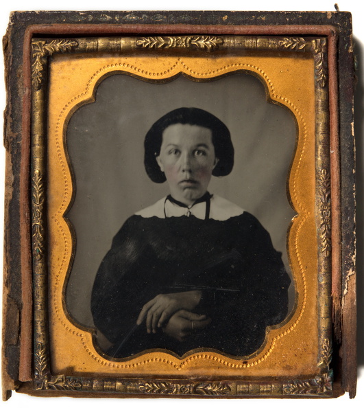 Ort und Fotograf sind nicht bekannt. Die Ambrotypie ist ein auf Glas entwickeltes Negativbild, das durch dunkle Hinterlegung als Positiv erscheint – ein typisches Verfahren der Frühzeit der Fotografie.