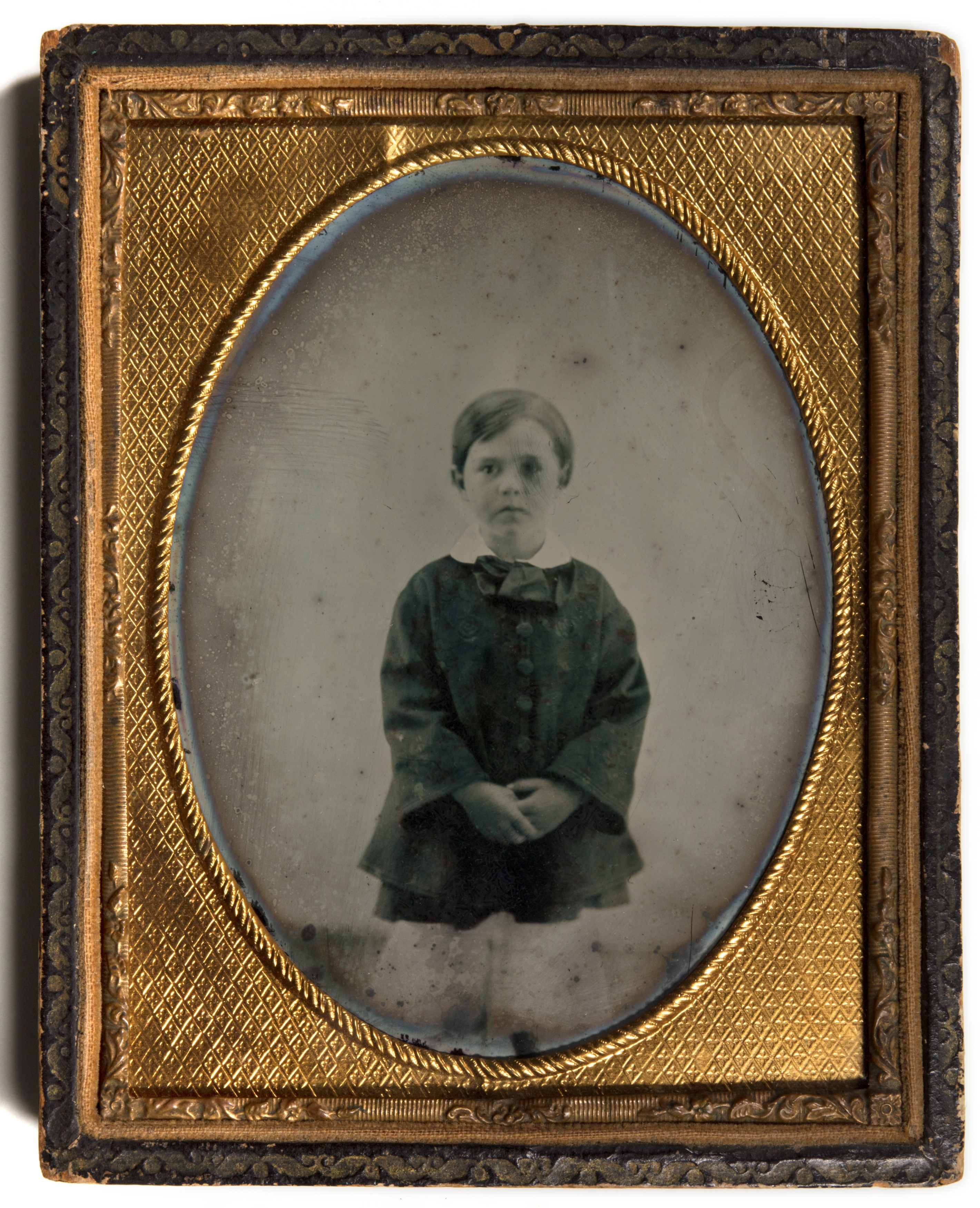 Ambrotypie eines Jungen im Etui, aufgenommen um 1860.