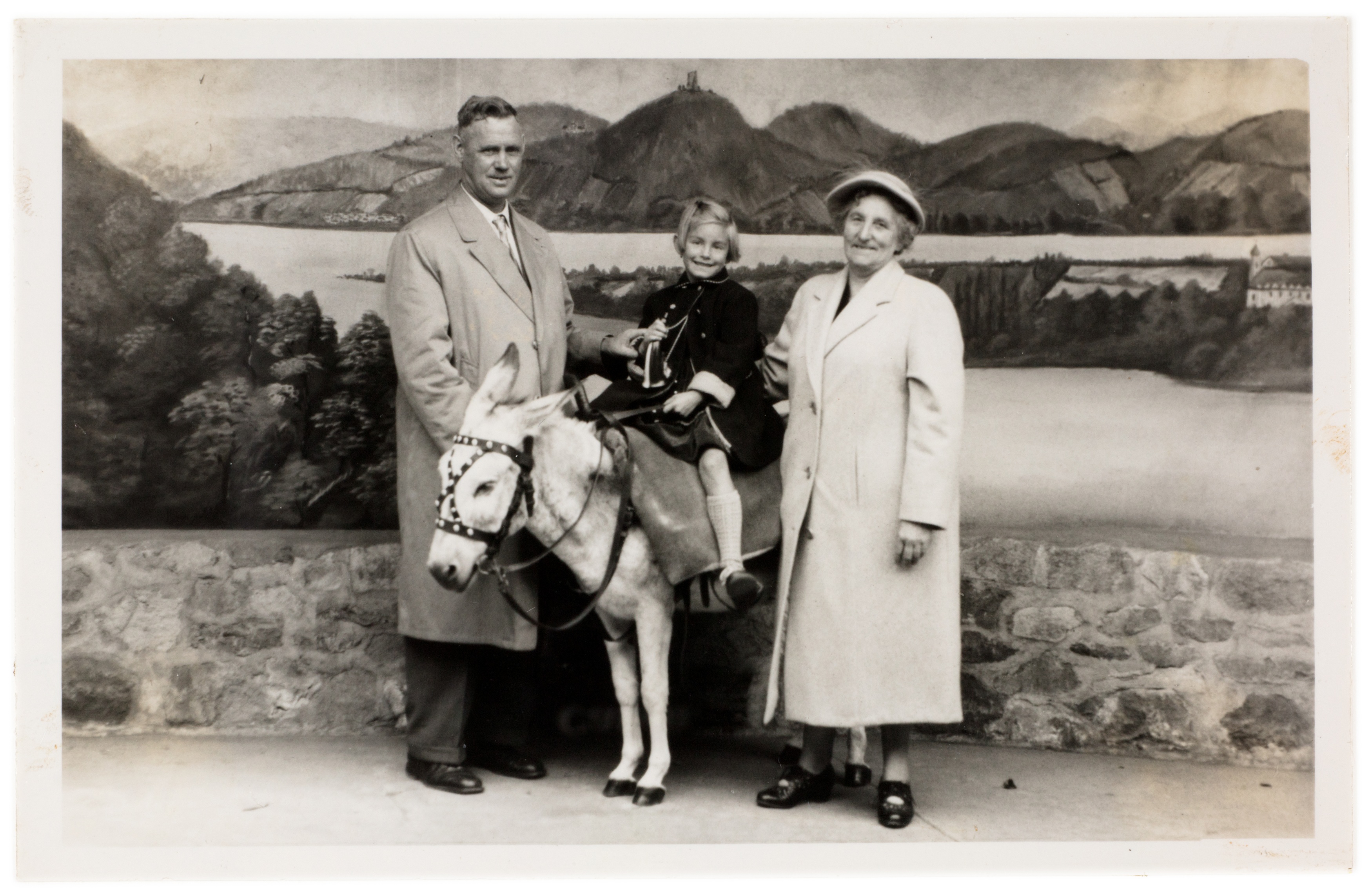 Zwischen den späten 1800er Jahren und den 1970er Jahren wurde den Besuchern des Drachenfels bei Königswinter Schnellfotografie als Souvenir ihrer Ausflüge angeboten. Fotografen präsentierten vor gemalten Kulissen und mit Requisiten inszenierte Bilder, die von humorvollen Szenen mit einem Esel bis zu inszenierten Rundflügen mit Flugzeugmotiven reichten. Diese Fotos dienten als persönliche Erinnerungen und spiegeln die Entwicklung des Tourismus und der Freizeitkultur am Mittelrhein über fast ein Jahrhundert wider.
