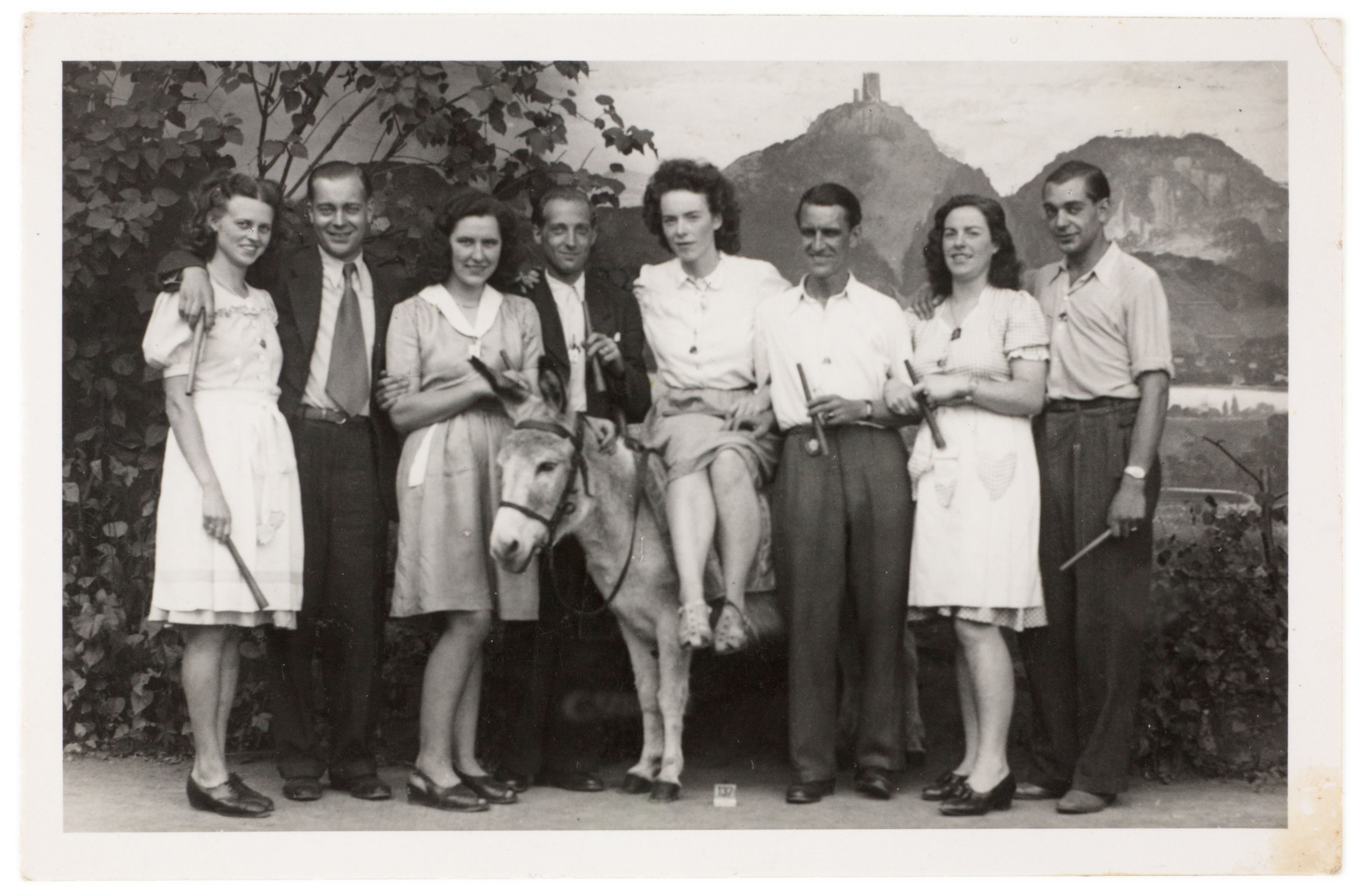 Drachenfels, Königswinter, Schnellfotografie, Tourismus, Freizeitkultur, Souvenir, Fotokulissen, Requisiten, Esel, Flugzeugmotive, Rhein, Massentourismus, historische Fotografie, 19. Jahrhundert, 20. Jahrhundert, Touristenfotografie, Erinnerung, Fotobuden, Kulturgeschichte, Rheinlandschaft