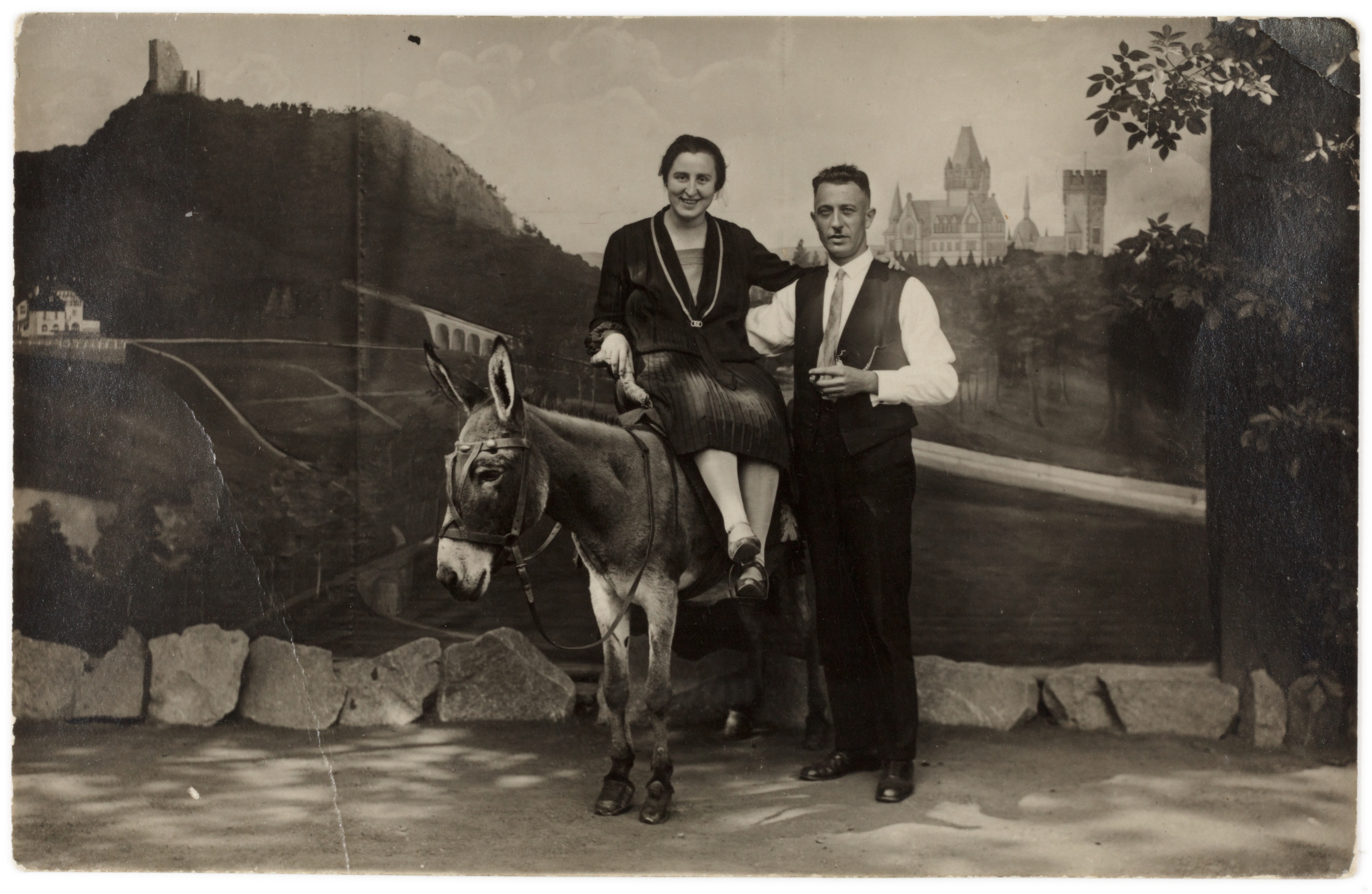 Zwischen den späten 1800er Jahren und den 1970er Jahren wurde den Besuchern des Drachenfels bei Königswinter Schnellfotografie als Souvenir ihrer Ausflüge angeboten. Fotografen präsentierten vor gemalten Kulissen und mit Requisiten inszenierte Bilder, die von humorvollen Szenen mit einem Esel bis zu inszenierten Rundflügen mit Flugzeugmotiven reichten. Diese Fotos dienten als persönliche Erinnerungen und spiegeln die Entwicklung des Tourismus und der Freizeitkultur am Mittelrhein über fast ein Jahrhundert wider.