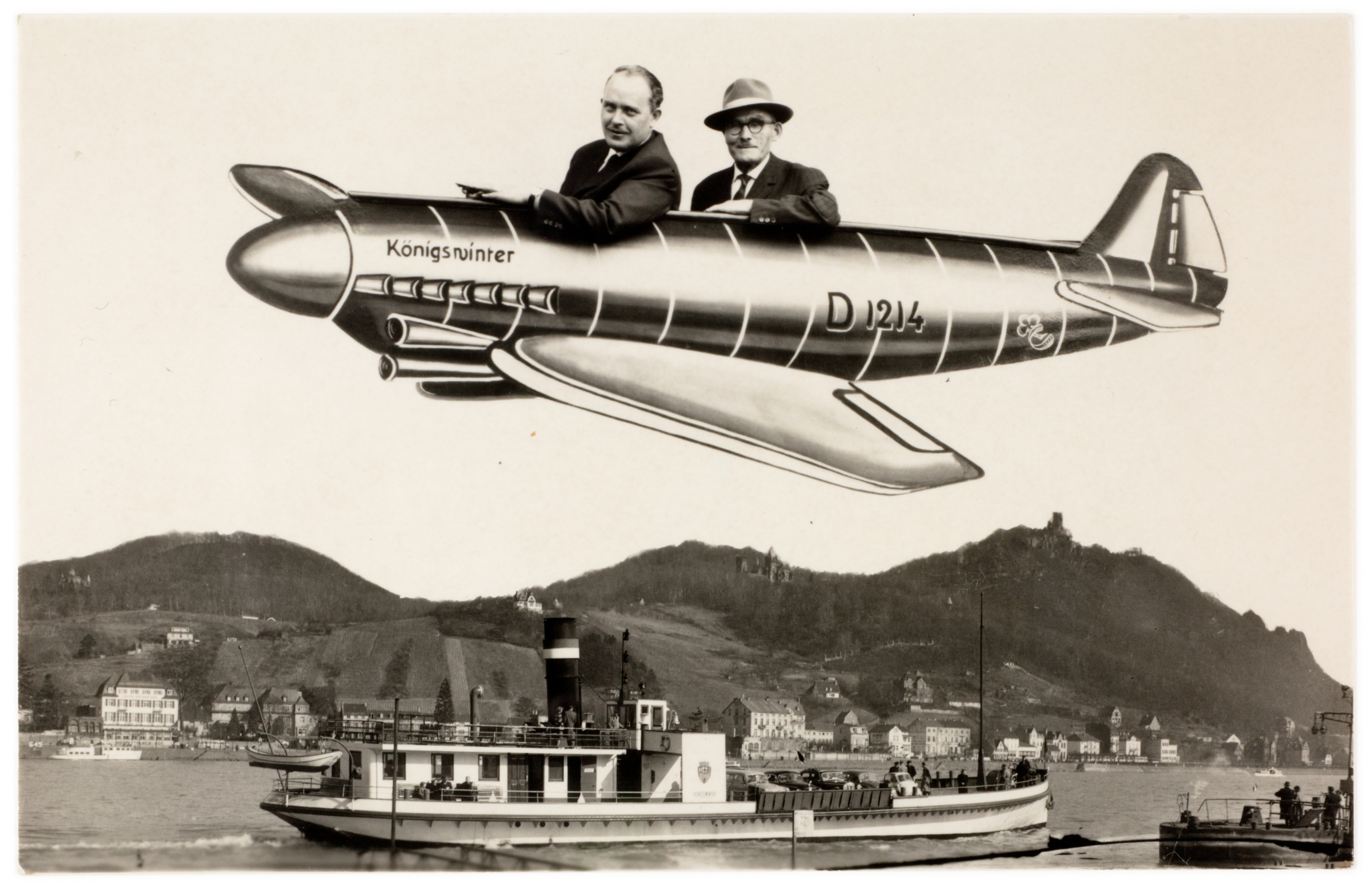 Zwischen den späten 1800er Jahren und den 1970er Jahren wurde den Besuchern des Drachenfels bei Königswinter Schnellfotografie als Souvenir ihrer Ausflüge angeboten. Fotografen präsentierten vor gemalten Kulissen und mit Requisiten inszenierte Bilder, die von humorvollen Szenen mit einem Esel bis zu inszenierten Rundflügen mit Flugzeugmotiven reichten. Diese Fotos dienten als persönliche Erinnerungen und spiegeln die Entwicklung des Tourismus und der Freizeitkultur am Mittelrhein über fast ein Jahrhundert wider.