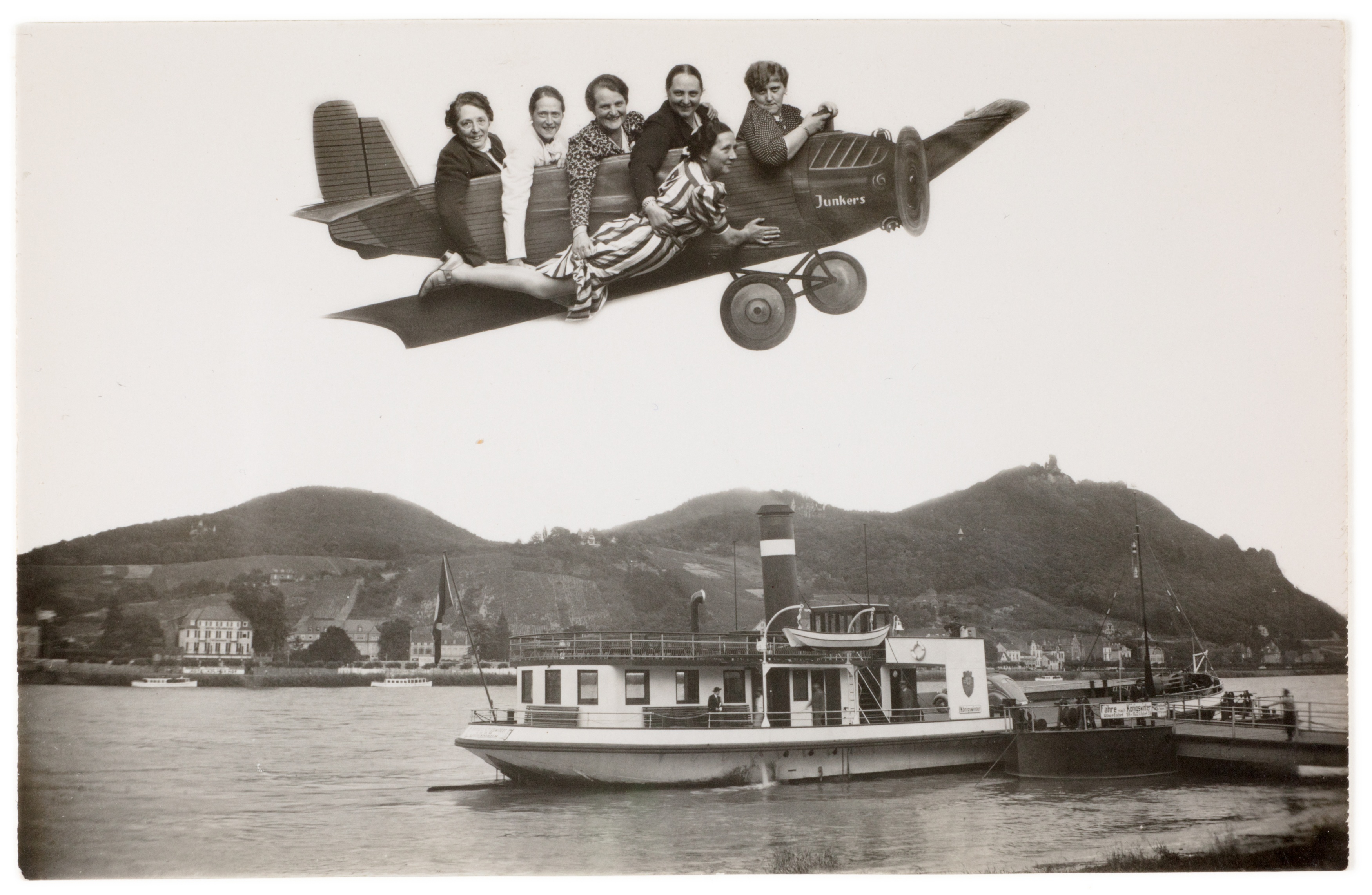Zwischen den späten 1800er Jahren und den 1970er Jahren wurde den Besuchern des Drachenfels bei Königswinter Schnellfotografie als Souvenir ihrer Ausflüge angeboten. Fotografen präsentierten vor gemalten Kulissen und mit Requisiten inszenierte Bilder, die von humorvollen Szenen mit einem Esel bis zu inszenierten Rundflügen mit Flugzeugmotiven reichten. Diese Fotos dienten als persönliche Erinnerungen und spiegeln die Entwicklung des Tourismus und der Freizeitkultur am Mittelrhein über fast ein Jahrhundert wider.
