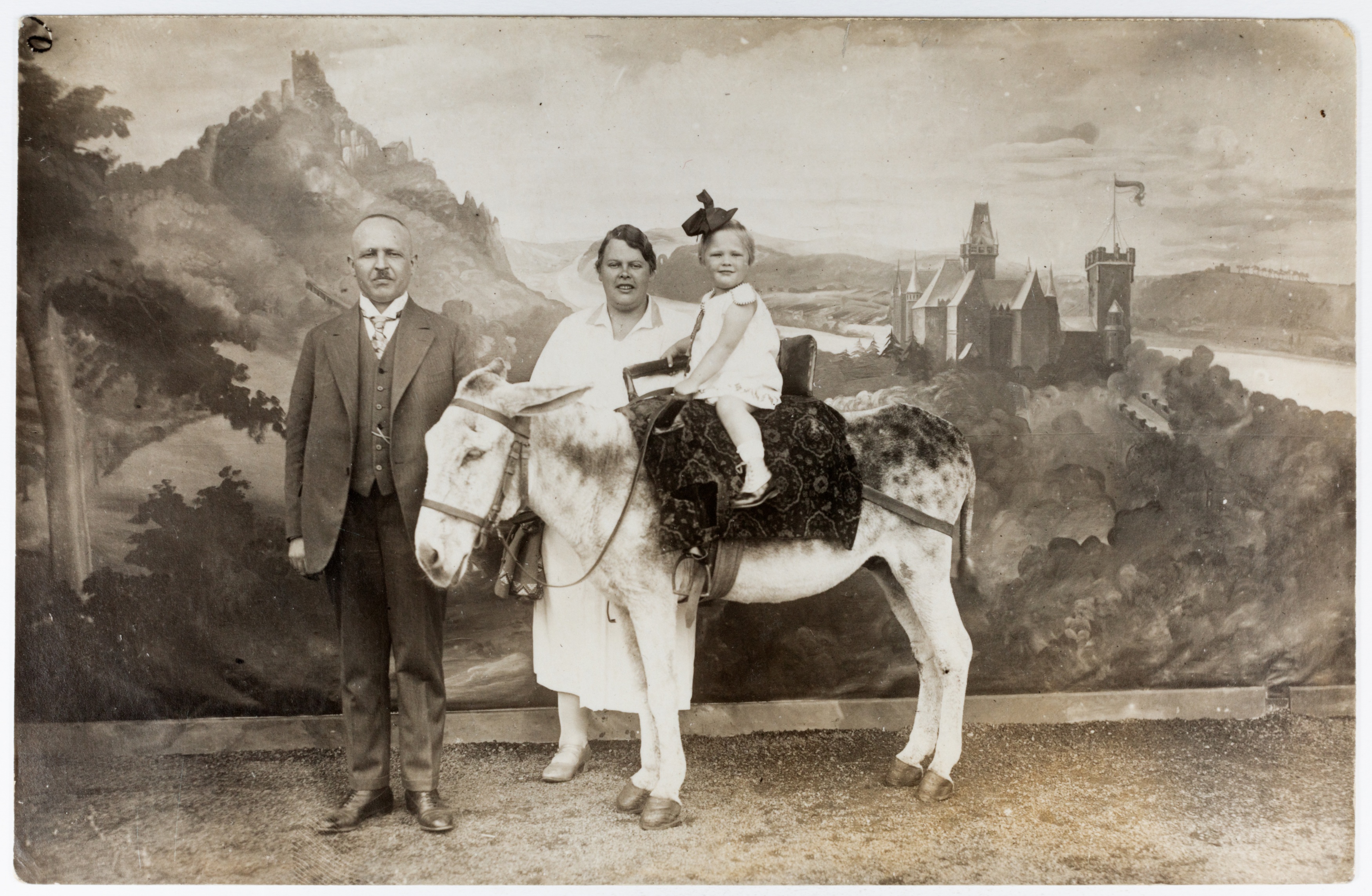 Zwischen den späten 1800er Jahren und den 1970er Jahren wurde den Besuchern des Drachenfels bei Königswinter Schnellfotografie als Souvenir ihrer Ausflüge angeboten. Fotografen präsentierten vor gemalten Kulissen und mit Requisiten inszenierte Bilder, die von humorvollen Szenen mit einem Esel bis zu inszenierten Rundflügen mit Flugzeugmotiven reichten. Diese Fotos dienten als persönliche Erinnerungen und spiegeln die Entwicklung des Tourismus und der Freizeitkultur am Mittelrhein über fast ein Jahrhundert wider.