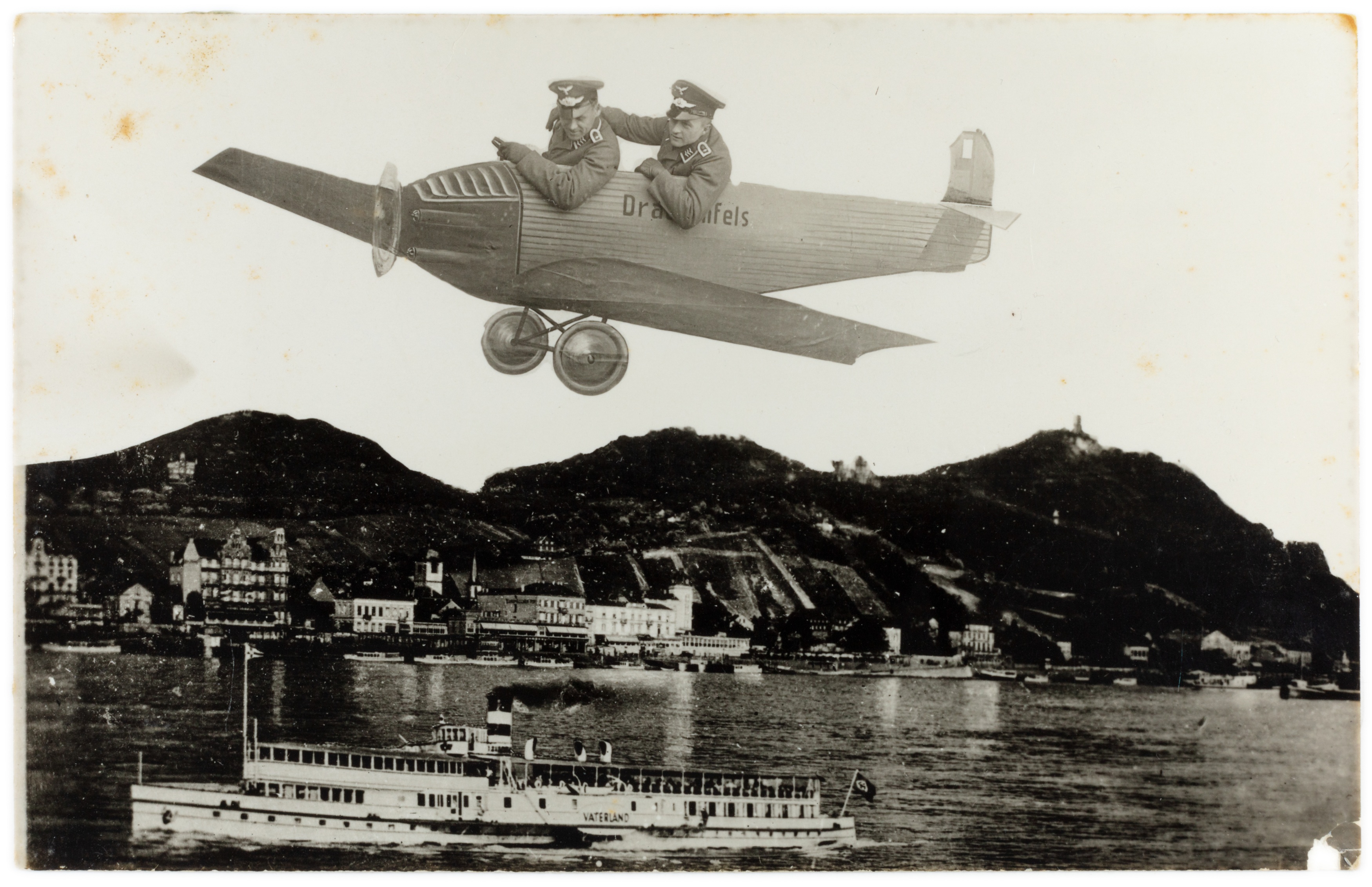 Zwischen den späten 1800er Jahren und den 1970er Jahren wurde den Besuchern des Drachenfels bei Königswinter Schnellfotografie als Souvenir ihrer Ausflüge angeboten. Fotografen präsentierten vor gemalten Kulissen und mit Requisiten inszenierte Bilder, die von humorvollen Szenen mit einem Esel bis zu inszenierten Rundflügen mit Flugzeugmotiven reichten. Diese Fotos dienten als persönliche Erinnerungen und spiegeln die Entwicklung des Tourismus und der Freizeitkultur am Mittelrhein über fast ein Jahrhundert wider.