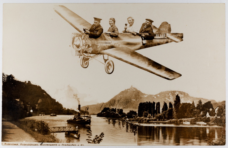 Zwischen den späten 1800er Jahren und den 1970er Jahren wurde den Besuchern des Drachenfels bei Königswinter Schnellfotografie als Souvenir ihrer Ausflüge angeboten. Fotografen präsentierten vor gemalten Kulissen und mit Requisiten inszenierte Bilder, die von humorvollen Szenen mit einem Esel bis zu inszenierten Rundflügen mit Flugzeugmotiven reichten. Diese Fotos dienten als persönliche Erinnerungen und spiegeln die Entwicklung des Tourismus und der Freizeitkultur am Mittelrhein über fast ein Jahrhundert wider.