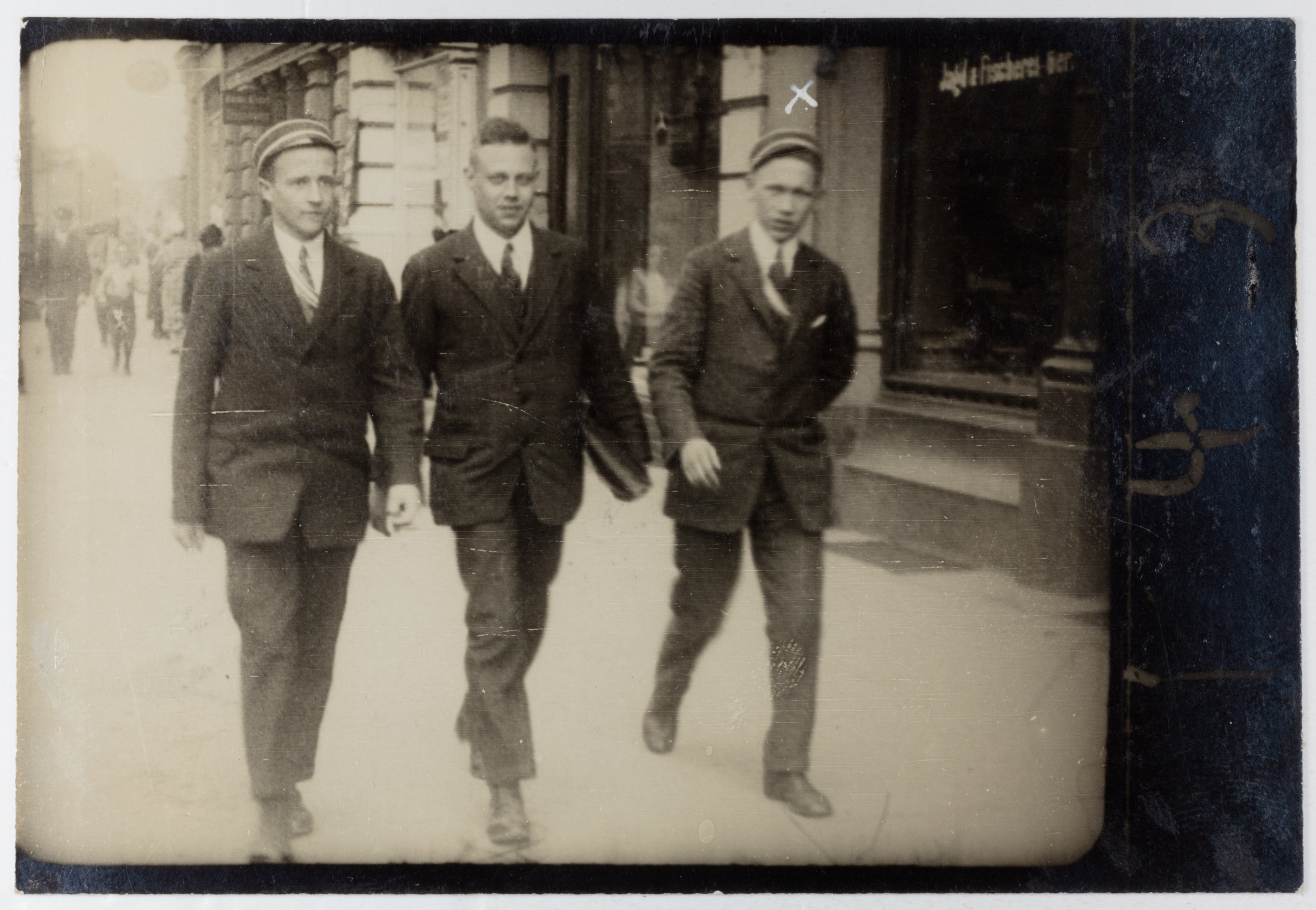 ein kommerzielles Straßenfotografie-Konzept der 1920er-Jahre: Passanten wurden ungefragt im Gehen fotografiert und erhielten einen Zettel – für eine Mark konnten sie den Bildstreifen später erwerben. Ziel war es, durch überraschende Momentaufnahmen spontane Käufer zu gewinnen.