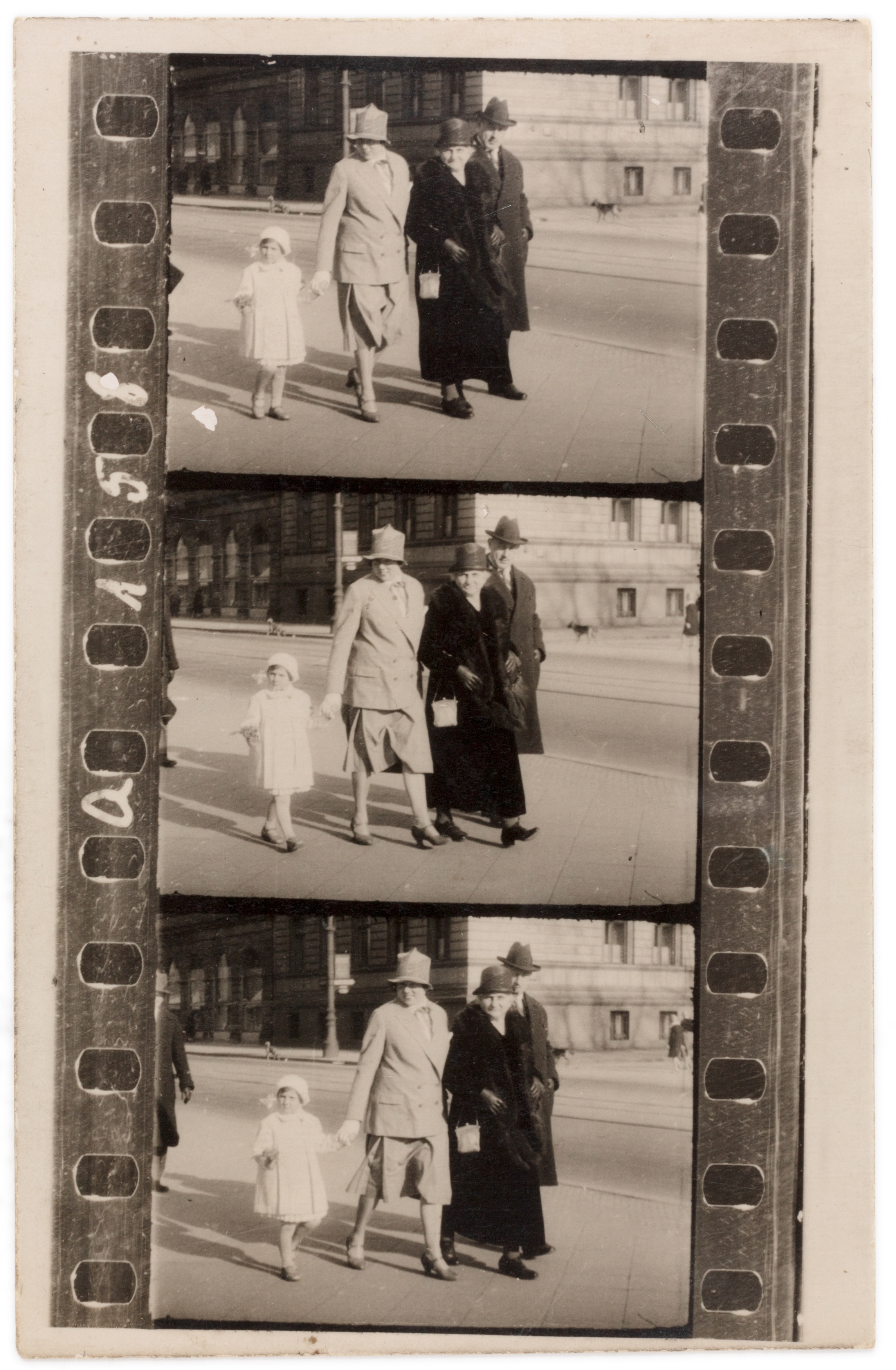 ein kommerzielles Straßenfotografie-Konzept der 1920er-Jahre: Passanten wurden ungefragt im Gehen fotografiert und erhielten einen Zettel – für eine Mark konnten sie den Bildstreifen später erwerben. Ziel war es, durch überraschende Momentaufnahmen spontane Käufer zu gewinnen.
