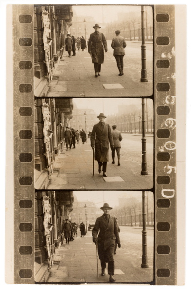 ein kommerzielles Straßenfotografie-Konzept der 1920er-Jahre: Passanten wurden ungefragt im Gehen fotografiert und erhielten einen Zettel – für eine Mark konnten sie den Bildstreifen später erwerben. Ziel war es, durch überraschende Momentaufnahmen spontane Käufer zu gewinnen.