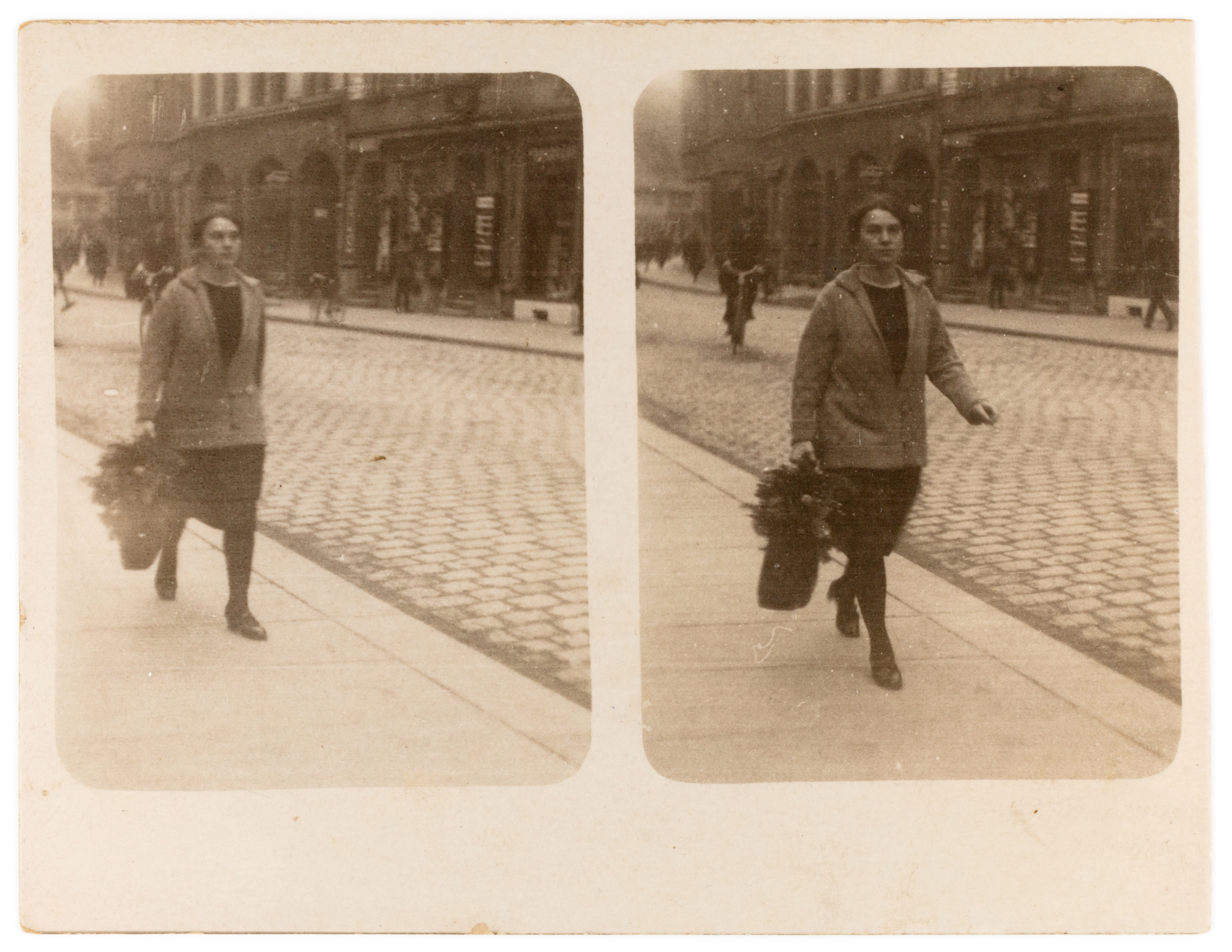 Film-Geh-Aufnahmen, Straßenfotografie, 1920er-Jahre, kommerziell, Passanten, Überraschung, Momentaufnahme, Bildstreifen, Verkauf, spontane Fotografie, urbanes Leben, Selbstinszenierung, Fotogewerbe, Weimarer Republik