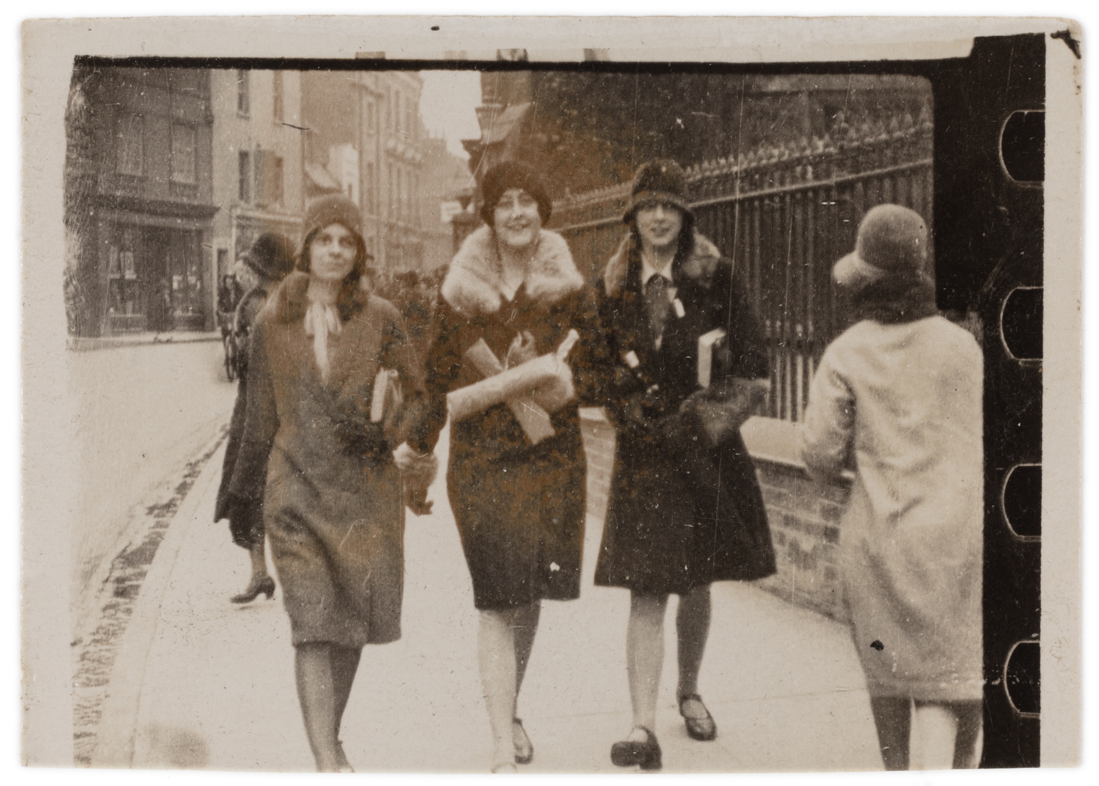ein kommerzielles Straßenfotografie-Konzept der 1920er-Jahre: Passanten wurden ungefragt im Gehen fotografiert und erhielten einen Zettel – für eine Mark konnten sie den Bildstreifen später erwerben. Ziel war es, durch überraschende Momentaufnahmen spontane Käufer zu gewinnen.