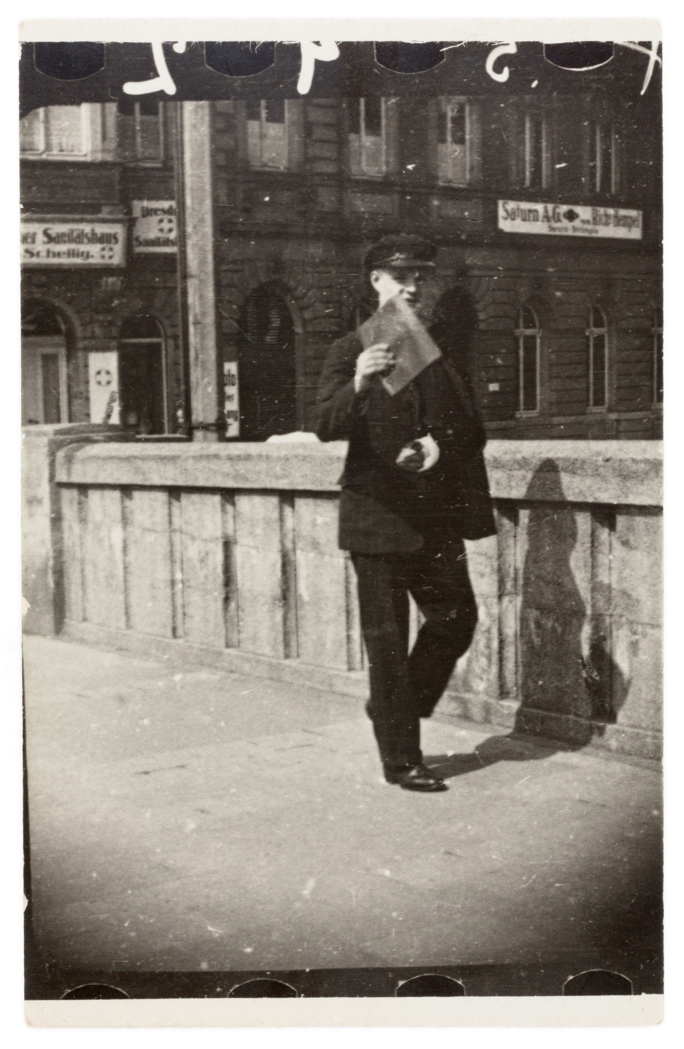 ein kommerzielles Straßenfotografie-Konzept der 1920er-Jahre: Passanten wurden ungefragt im Gehen fotografiert und erhielten einen Zettel – für eine Mark konnten sie den Bildstreifen später erwerben. Ziel war es, durch überraschende Momentaufnahmen spontane Käufer zu gewinnen.