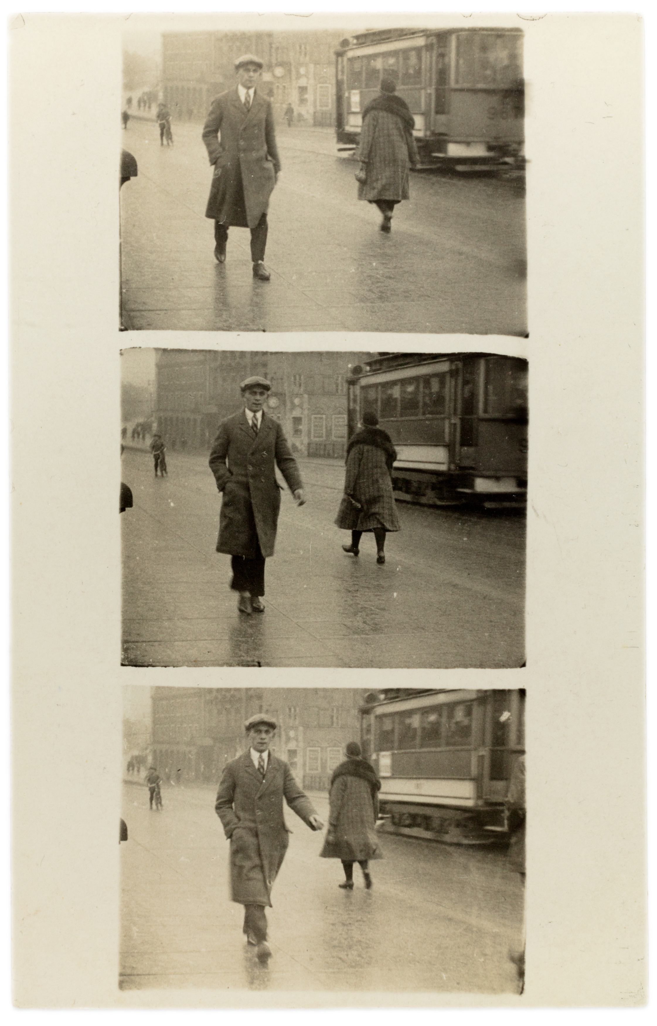 Film-Geh-Aufnahmen, Straßenfotografie, 1920er-Jahre, kommerziell, Passanten, Überraschung, Momentaufnahme, Bildstreifen, Verkauf, spontane Fotografie, urbanes Leben, Selbstinszenierung, Fotogewerbe, Weimarer Republik