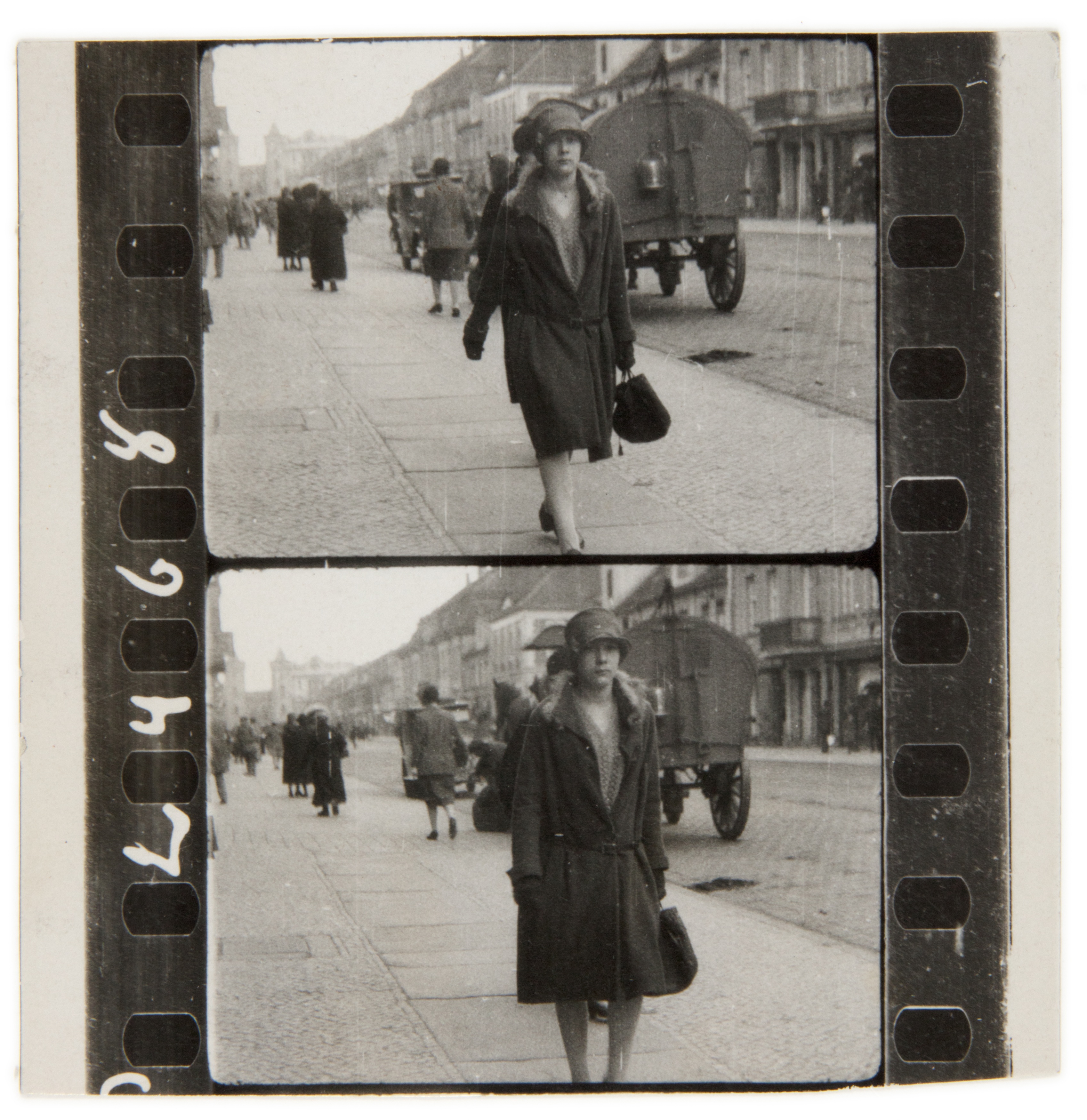 ein kommerzielles Straßenfotografie-Konzept der 1920er-Jahre: Passanten wurden ungefragt im Gehen fotografiert und erhielten einen Zettel – für eine Mark konnten sie den Bildstreifen später erwerben. Ziel war es, durch überraschende Momentaufnahmen spontane Käufer zu gewinnen.