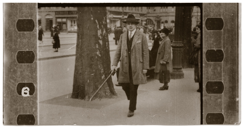 ein kommerzielles Straßenfotografie-Konzept der 1920er-Jahre: Passanten wurden ungefragt im Gehen fotografiert und erhielten einen Zettel – für eine Mark konnten sie den Bildstreifen später erwerben. Ziel war es, durch überraschende Momentaufnahmen spontane Käufer zu gewinnen.