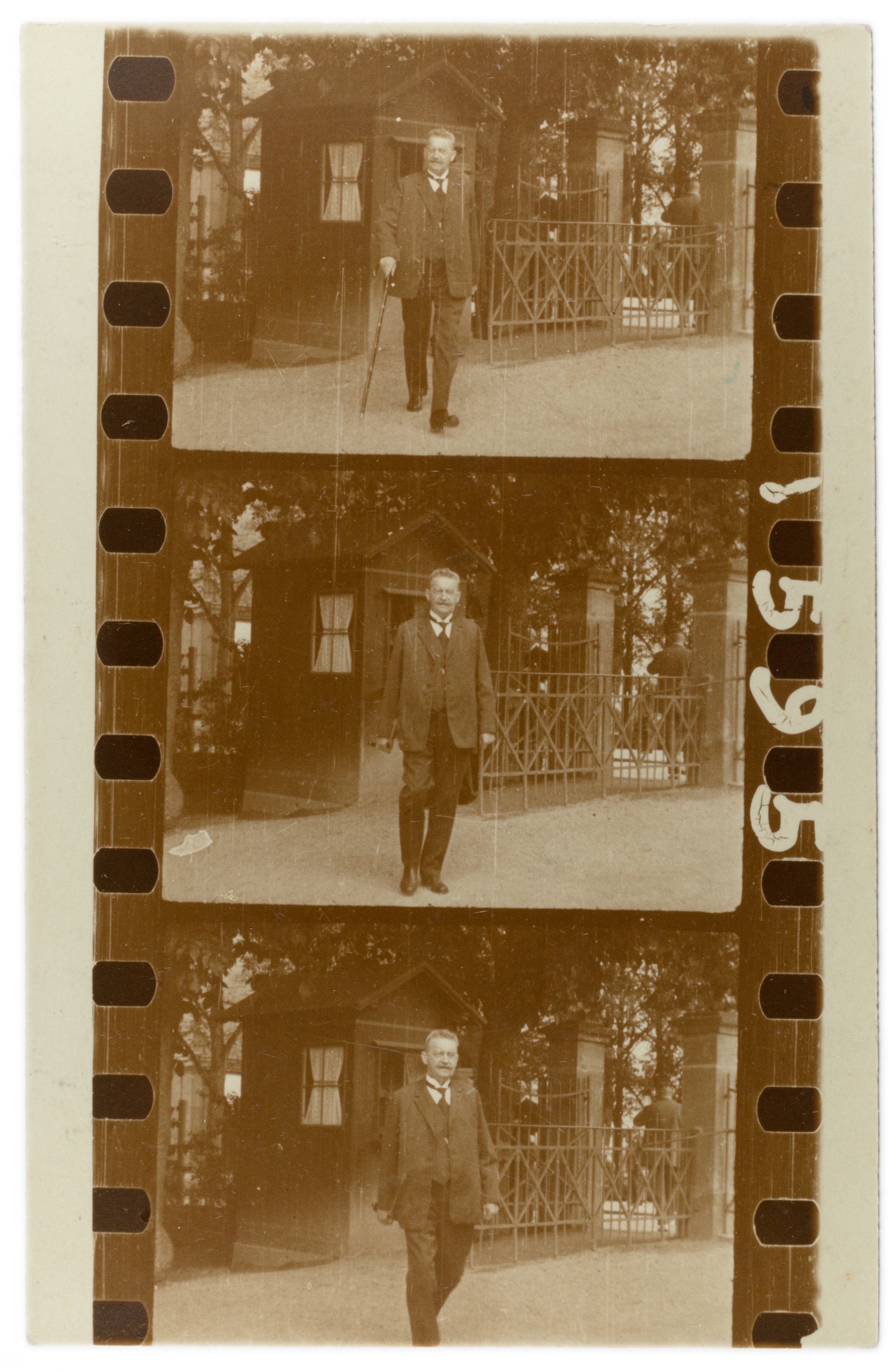ein kommerzielles Straßenfotografie-Konzept der 1920er-Jahre: Passanten wurden ungefragt im Gehen fotografiert und erhielten einen Zettel – für eine Mark konnten sie den Bildstreifen später erwerben. Ziel war es, durch überraschende Momentaufnahmen spontane Käufer zu gewinnen.