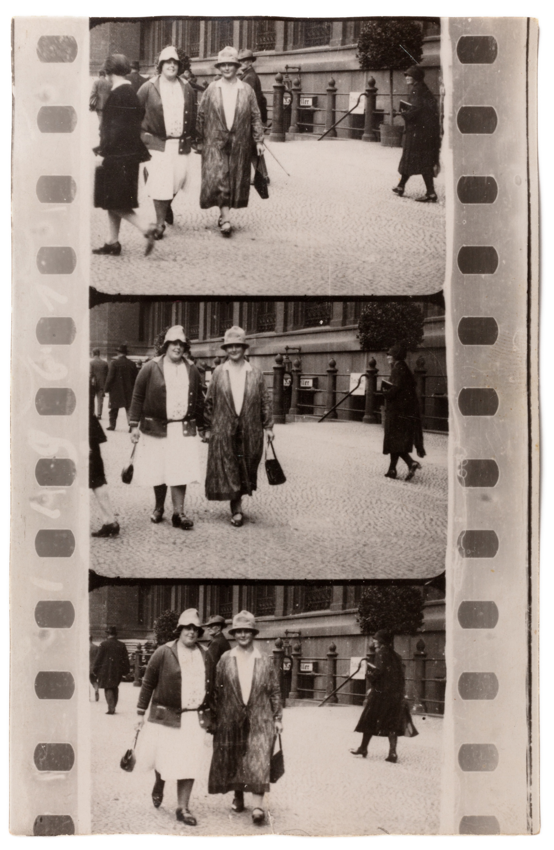 ein kommerzielles Straßenfotografie-Konzept der 1920er-Jahre: Passanten wurden ungefragt im Gehen fotografiert und erhielten einen Zettel – für eine Mark konnten sie den Bildstreifen später erwerben. Ziel war es, durch überraschende Momentaufnahmen spontane Käufer zu gewinnen.