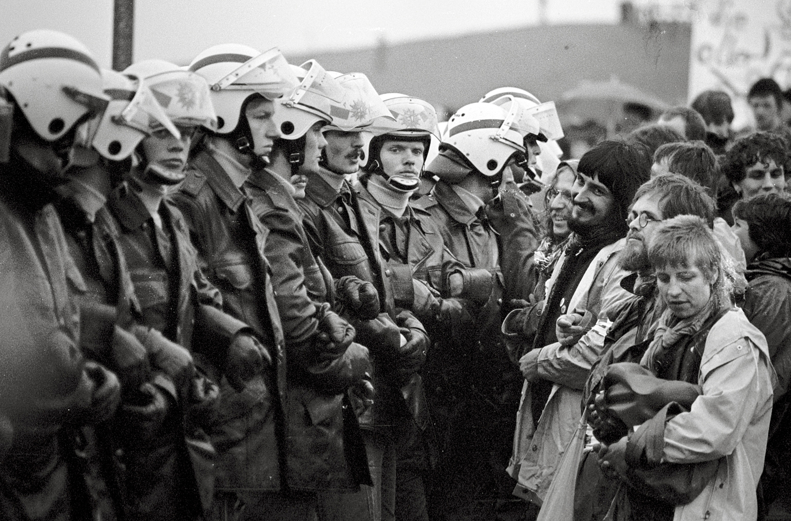 Brokdorf, Demonstration, 7. Juni 1986, Anti-Atomkraft, Protest, Friedensbewegung, Umweltaktivismus, Kernkraftwerk, Atomkraftgegner, politische Kundgebung, Bürgerprotest, 1980er, Umweltbewegung, Demonstranten, öffentliche Versammlung, politische Geschichte