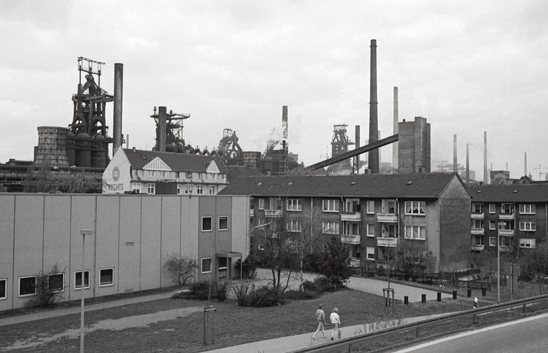 Thyssen Hochoefen in Duisburg-Bruckhausen von Duisburg-Beeck aus gesehen, 1985
